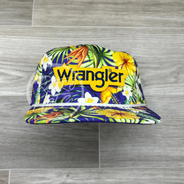 Wrangler on Purple Hawaiian Retro Rope Hat w/Leather Strap Back