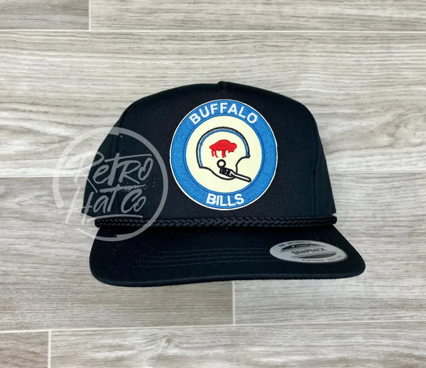 Retro Buffalo Bills Helmet Crest on Black Classic Retro Rope Hat